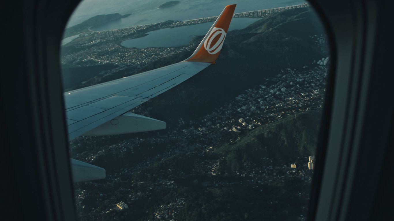 Download 1366x768 airplane, wing, porthole wallpaper, background tablet, laptop