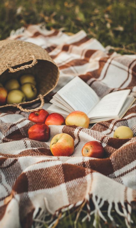 Download 480x800 apples, basket, book, plaid wallpaper, background nokia x, x2, xl, 520, 620, 820, samsung galaxy star, ace, asus zenfone 4