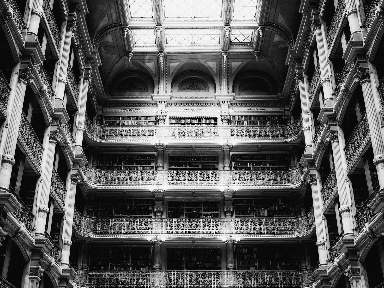 Download 1600x1200 architecture, balconies, columns, bw wallpaper, background standard 4:3