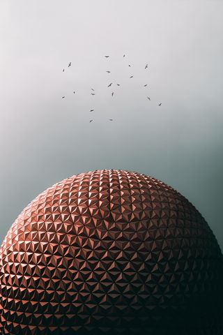 Download 320x480 ball, building, architecture, dome, birds wallpaper, background samsung galaxy ace gt-s5830, sony xperia e, miro, htc wildfire s, c, lg optimus