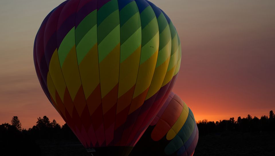 Download 960x544 balloons, colorful, trees, sunset wallpaper, background playstation ps vita