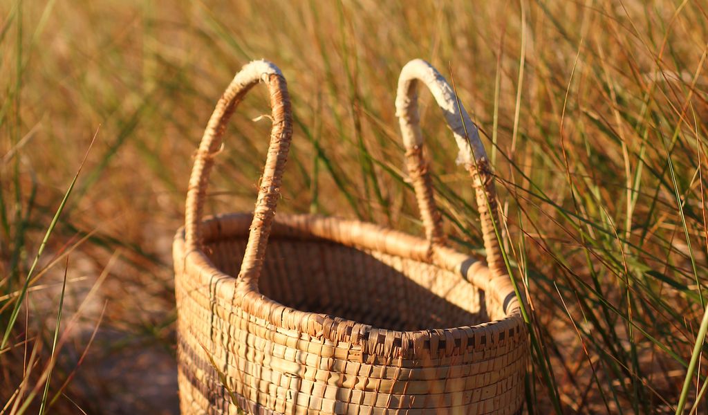 Download 1024x600 basket, braid, grass, sunshine, summer wallpaper, background netbook, tablet