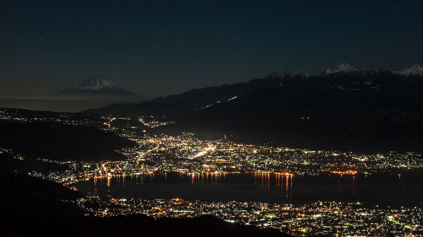 Download 1366x768 bay, sea, lights, night, volcano wallpaper, background tablet, laptop