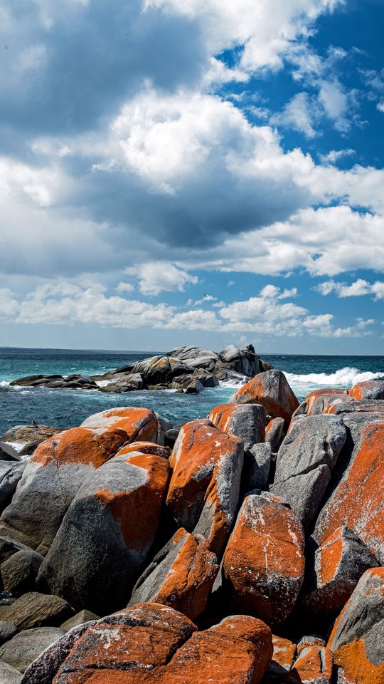 Download 540x960 bay, stones, binalong bay, australia wallpaper, background samsung galaxy s4 mini, microsoft lumia 535, philips xenium, lg l90, htc sensation