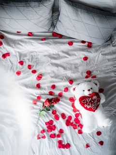 Download 240x320 bear cub, toy, rose, flower, petals, valentine wallpaper, background old mobile, cell phone, smartphone