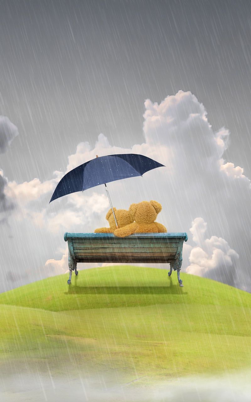 Download 800x1280 bench, rain, teddy bear, love wallpaper, background samsung galaxy note gt-n7000, meizu mx2