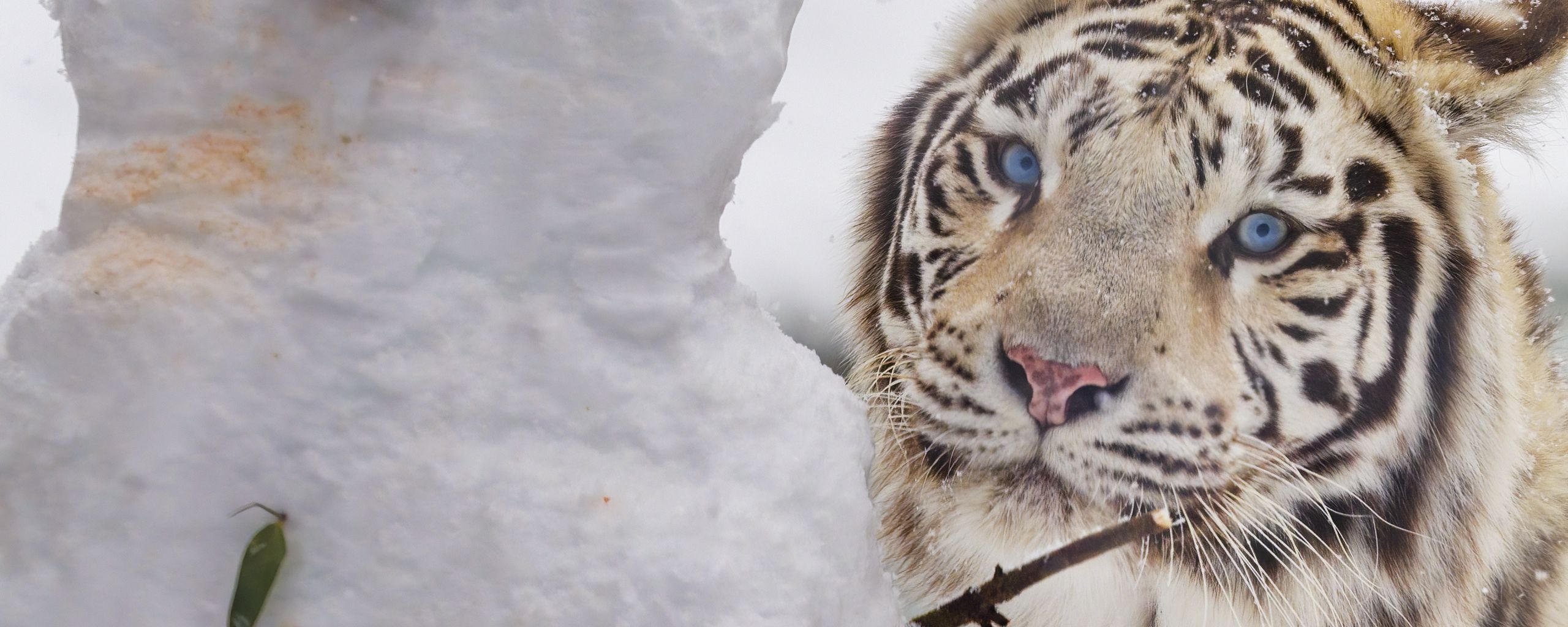 Download 2560x1024 bengal tiger, tiger, animal, snowman, white wallpaper, background ultrawide monitor
