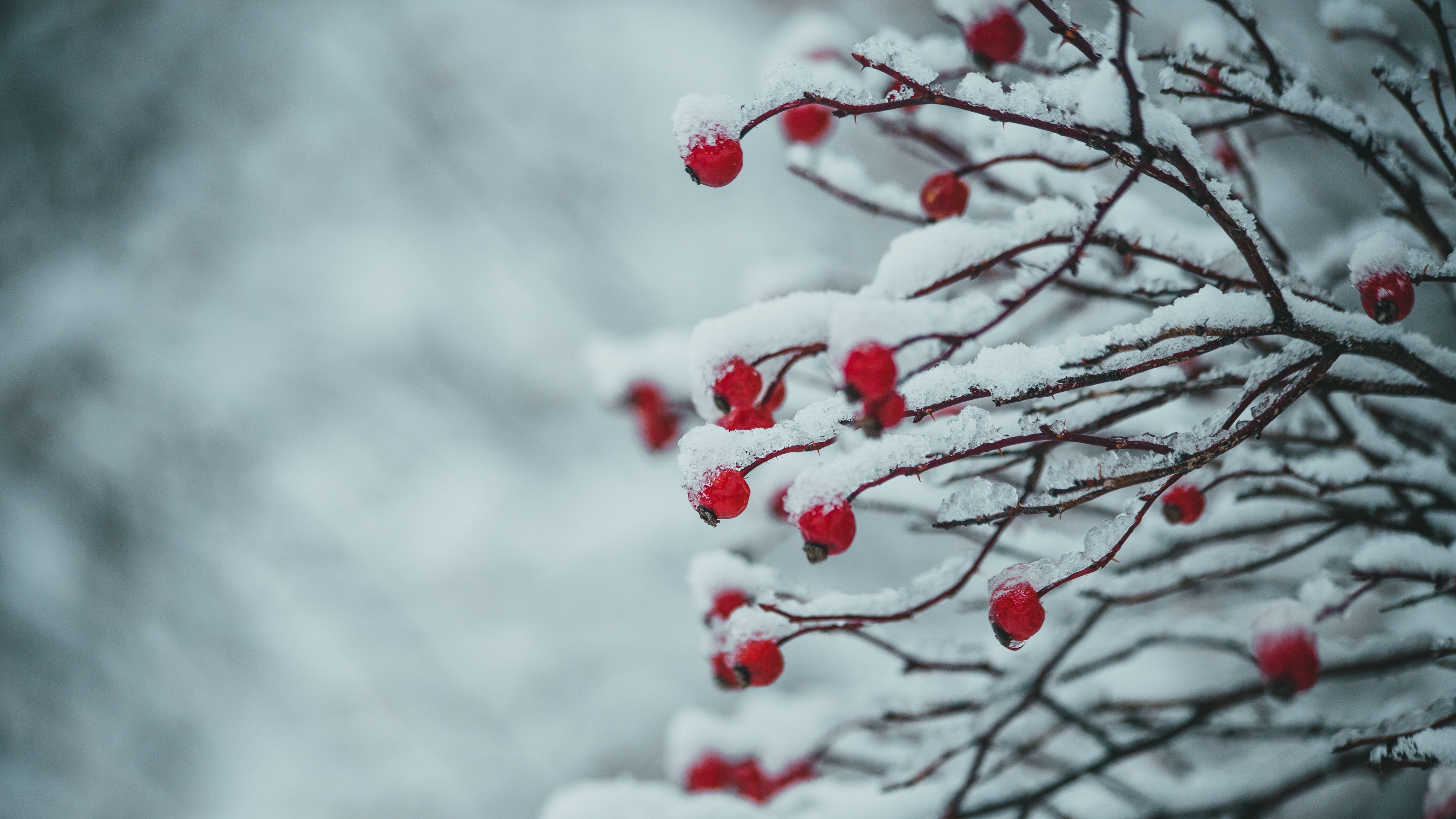 Download 3840x2160 berries, branches, snow, plant, winter wallpaper, background 4k uhd 16:9