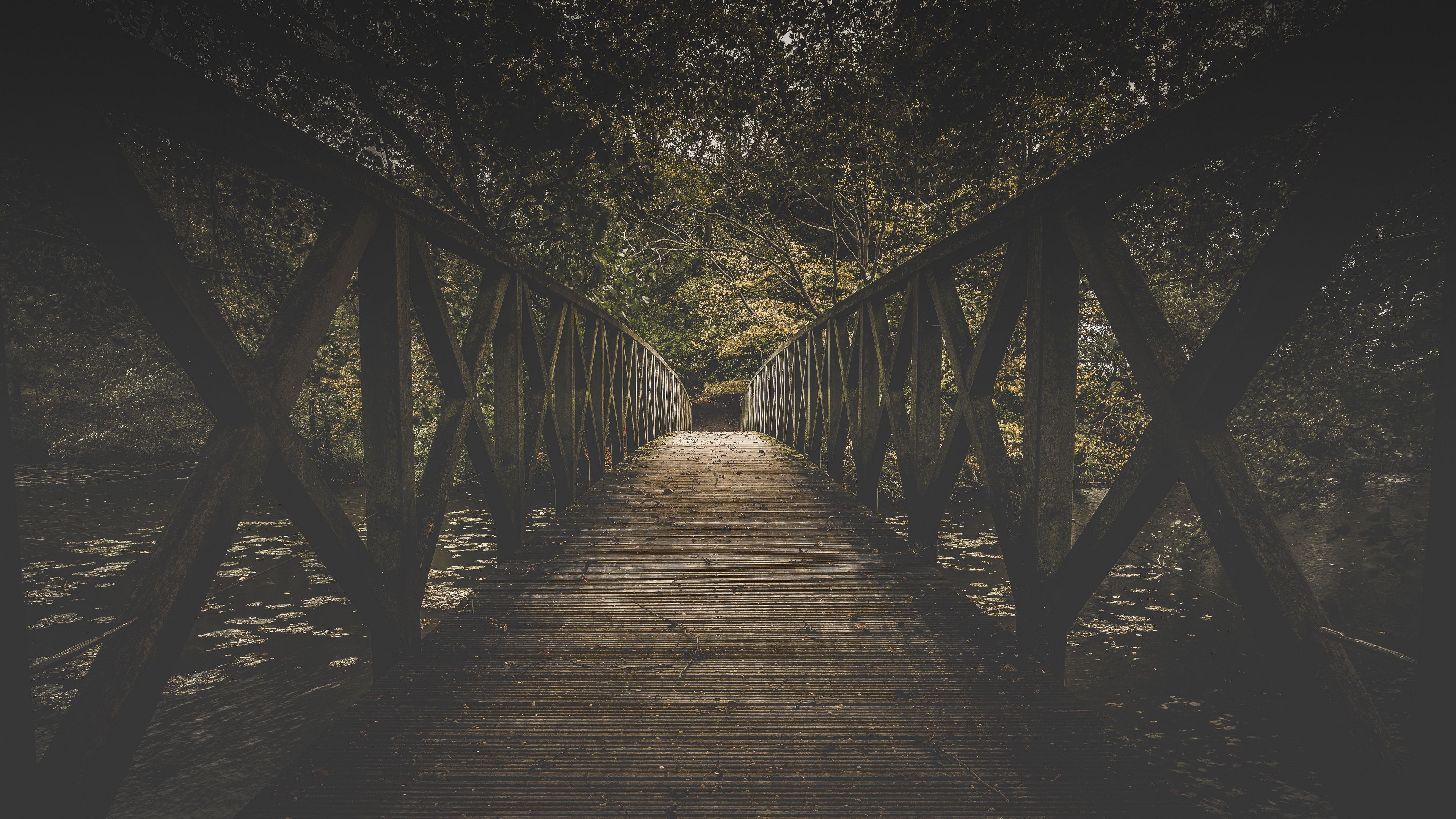 Download 3840x2160 bridge, board, trees wallpaper, background 4k uhd 16:9