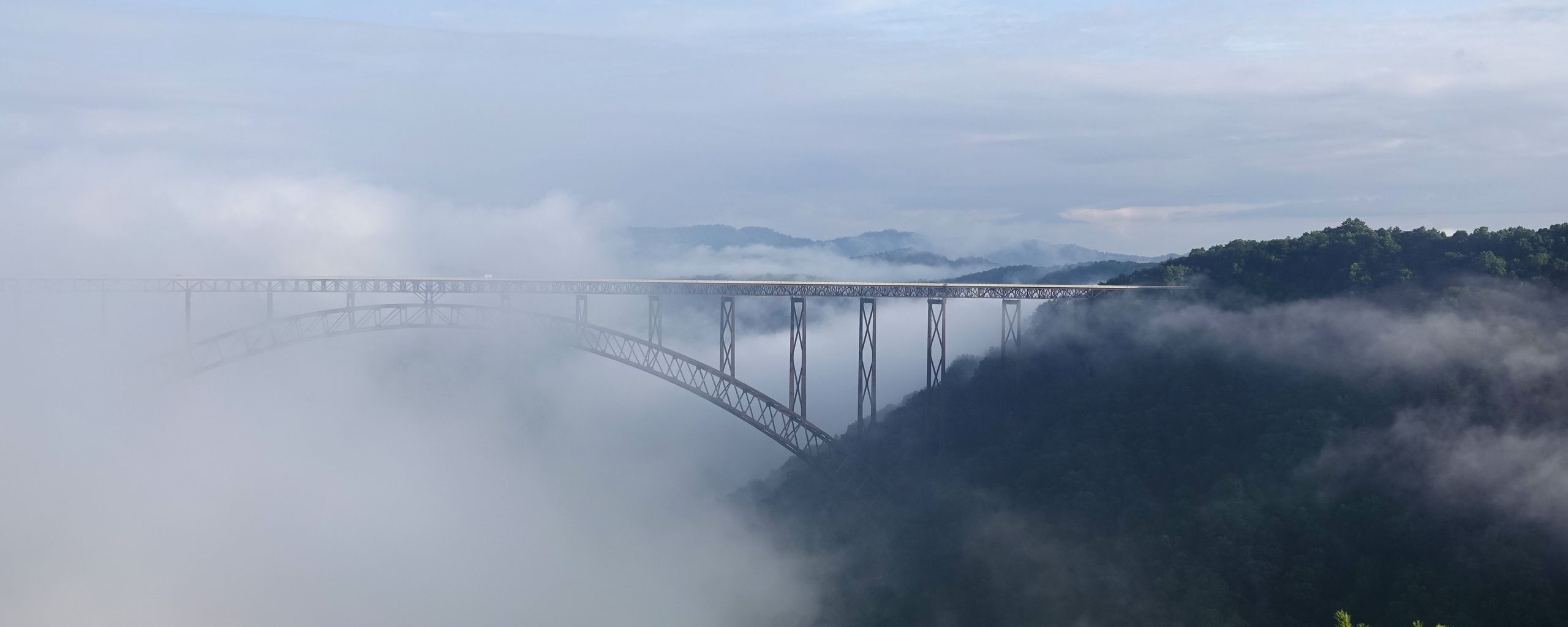 Download 2560x1024 bridge, fog, trees, forest wallpaper, background ultrawide monitor
