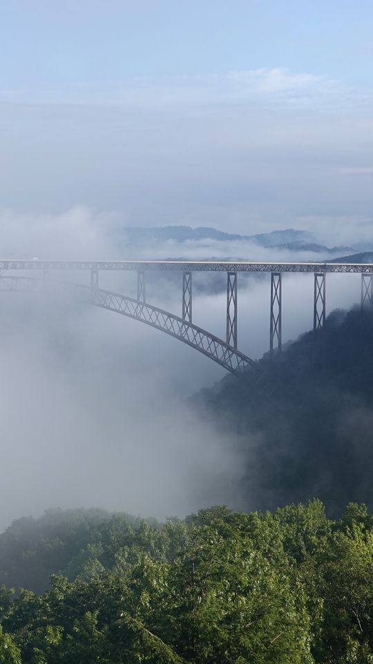 Download 540x960 bridge, fog, trees, forest wallpaper, background samsung galaxy s4 mini, microsoft lumia 535, philips xenium, lg l90, htc sensation