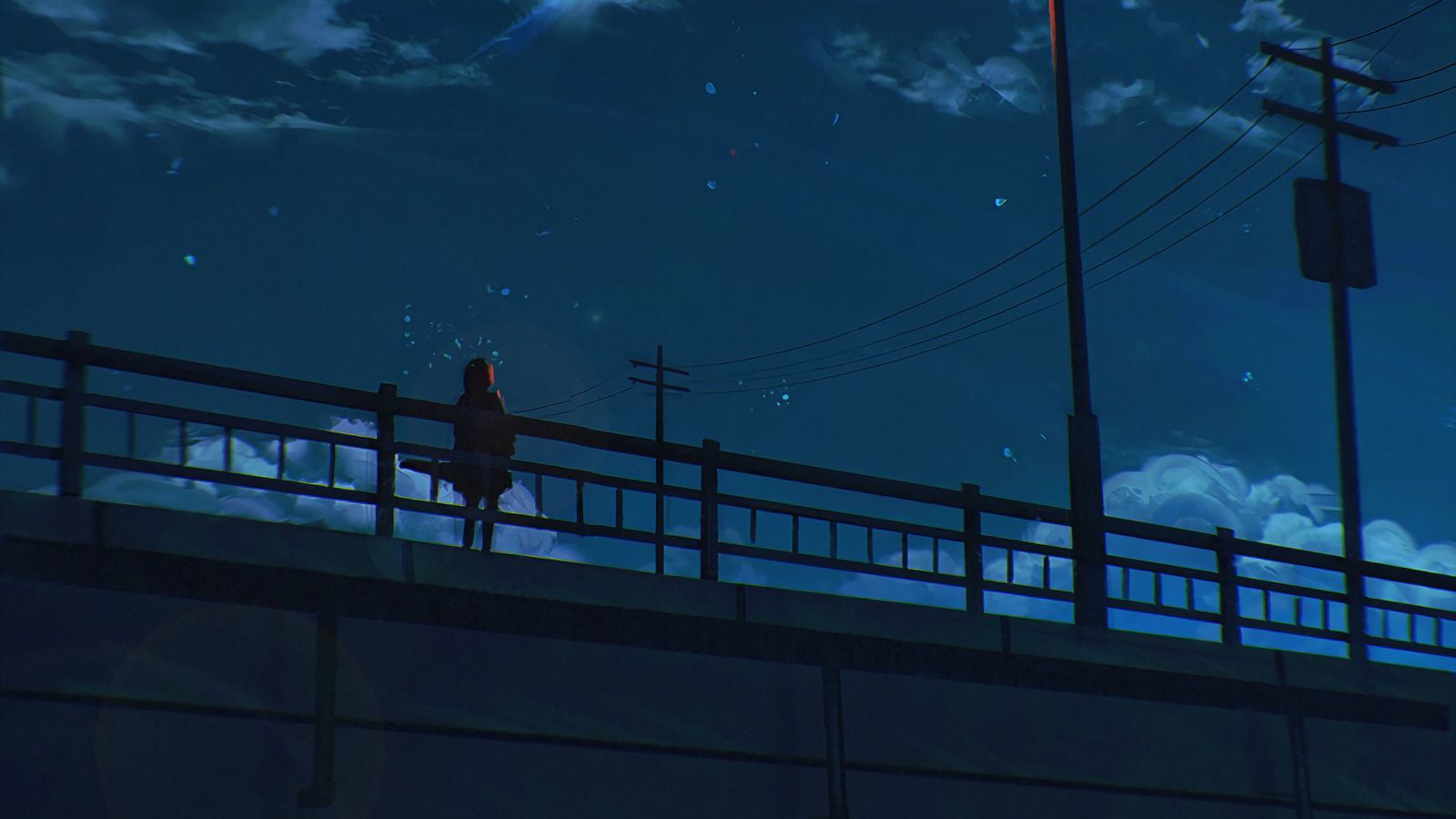 Download 1600x900 bridge, loneliness, art, night, sky, lantern wallpaper, background widescreen 16:9