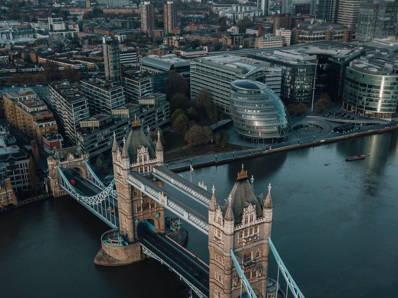 Download 1280x960 bridge, river, buildings, city, aerial view, london wallpaper, background standard 4:3