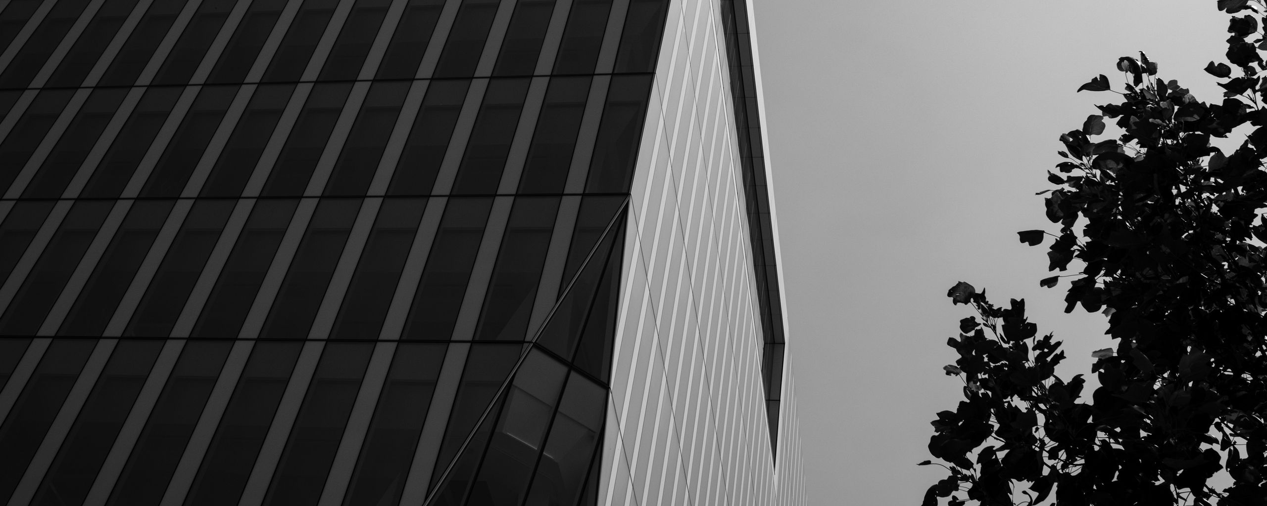 Download 2560x1024 building, architecture, angle, tree, leaves, bw wallpaper, background ultrawide monitor