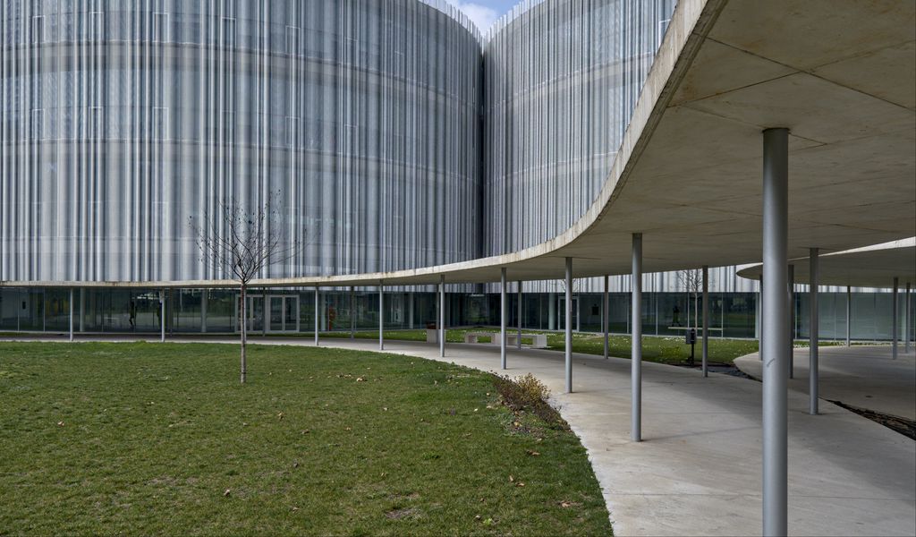 Download 1024x600 building, facade, roof, pillars, road, architecture wallpaper, background netbook, tablet