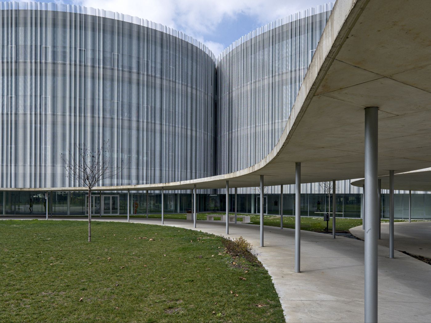 Download 1400x1050 building, facade, roof, pillars, road, architecture wallpaper, background standard 4:3