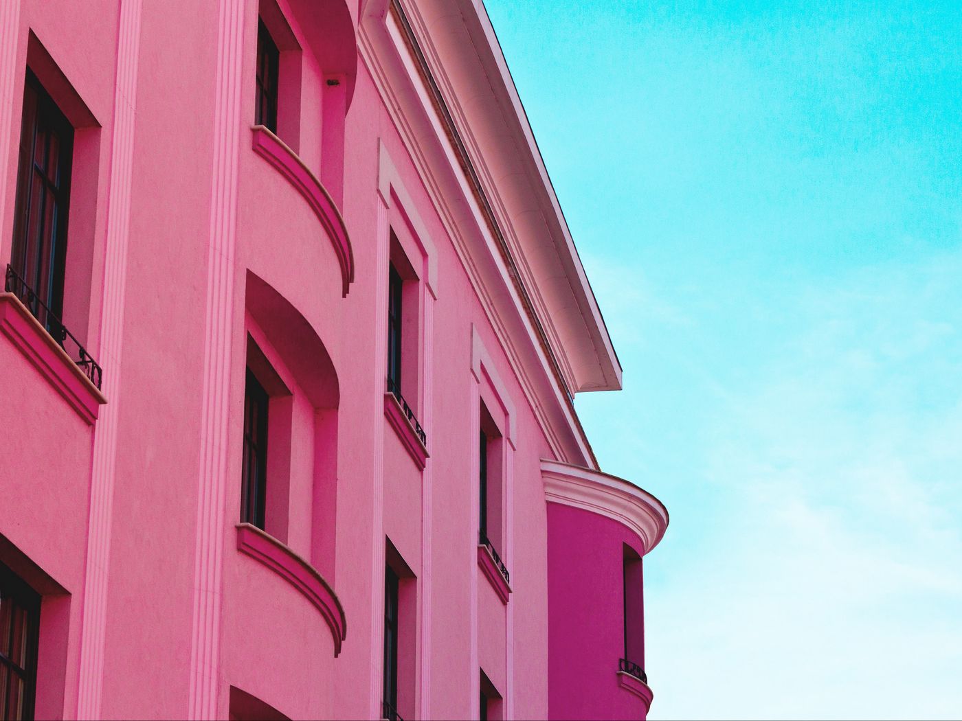 Download 1400x1050 building, facade, sky, minimalism, pink, architecture wallpaper, background standard 4:3