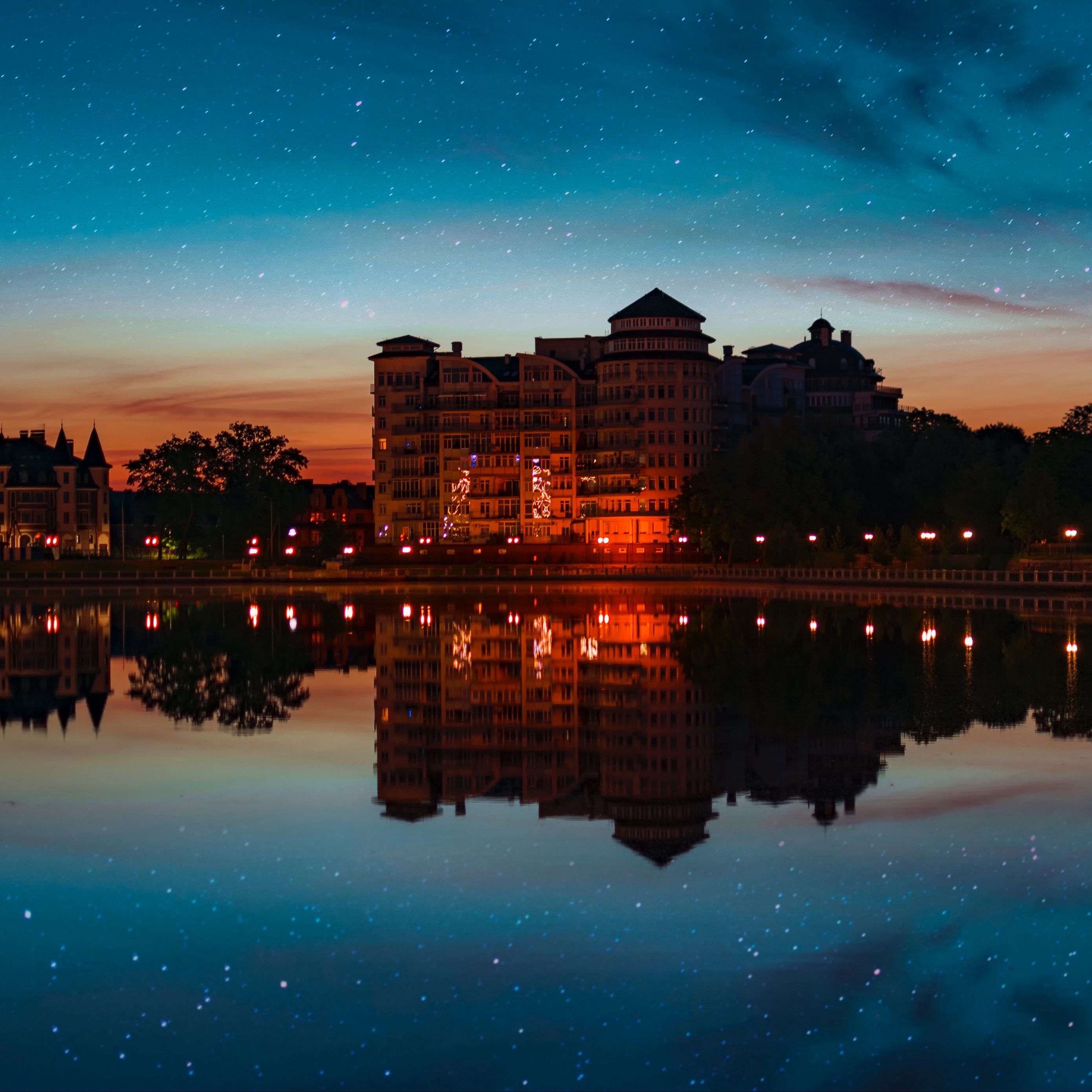 Download 2780x2780 building, starry sky, architecture, sunset, reflection wallpaper, background ipad air, ipad air 2, ipad 3, ipad 4, ipad mini 2, ipad mini 3, ipad mini 4, ipad pro 9.7" for parallax