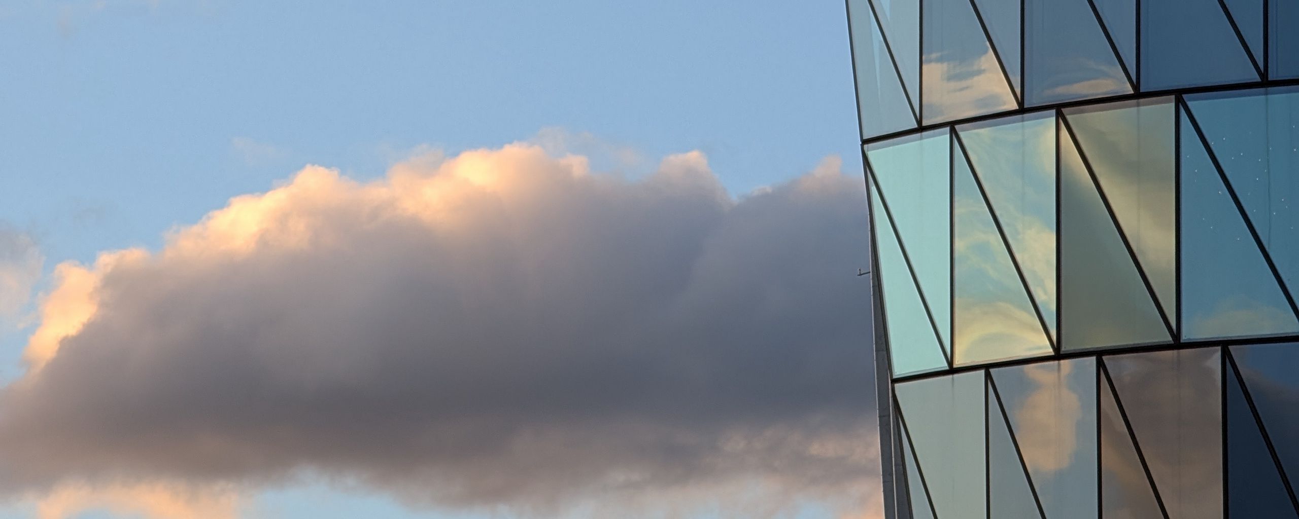 Download 2560x1024 building, windows, reflection, clouds, height wallpaper, background ultrawide monitor