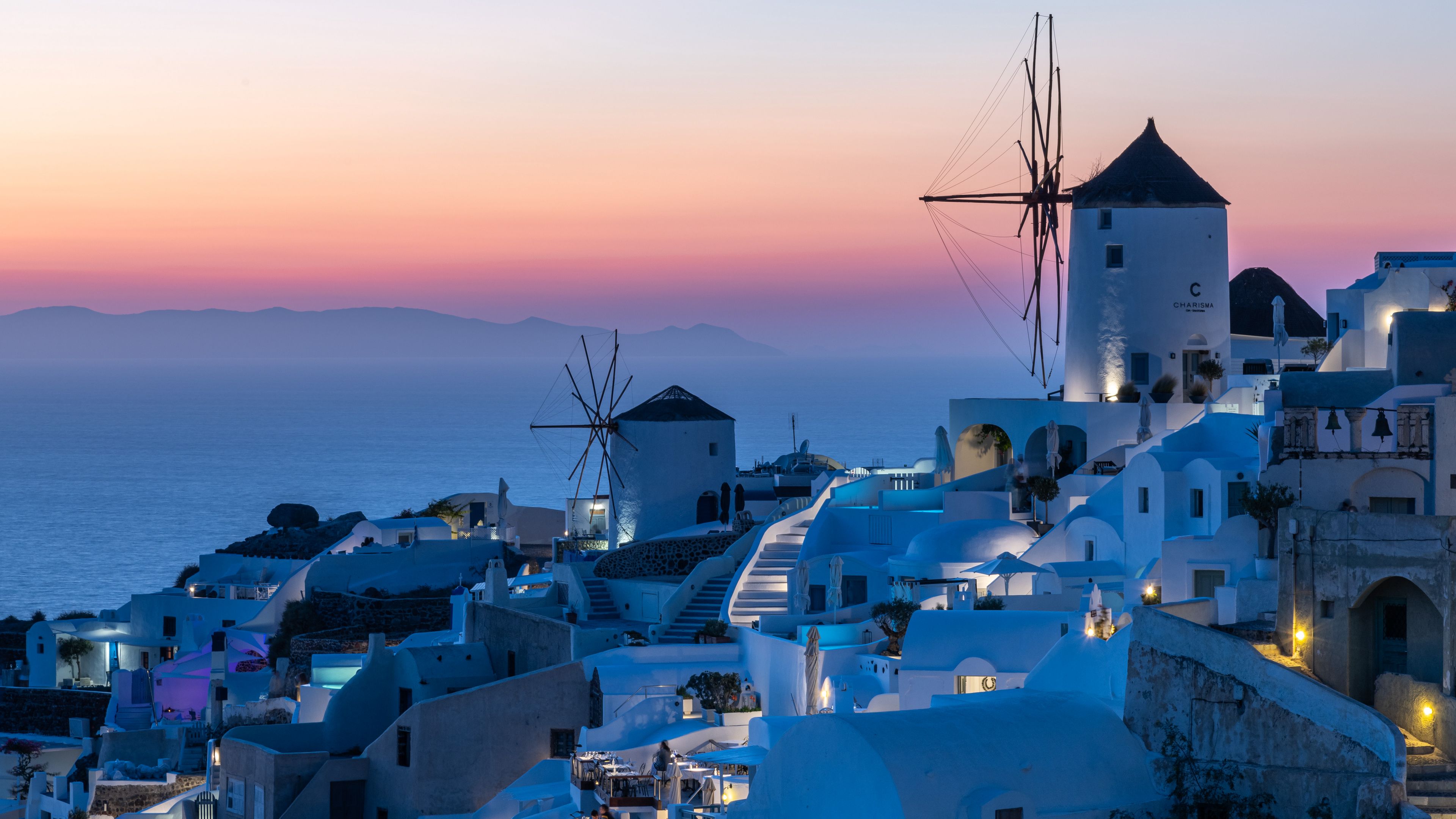 Download 3840x2160 buildings, architecture, light, sea, twilight wallpaper, background 4k uhd 16:9