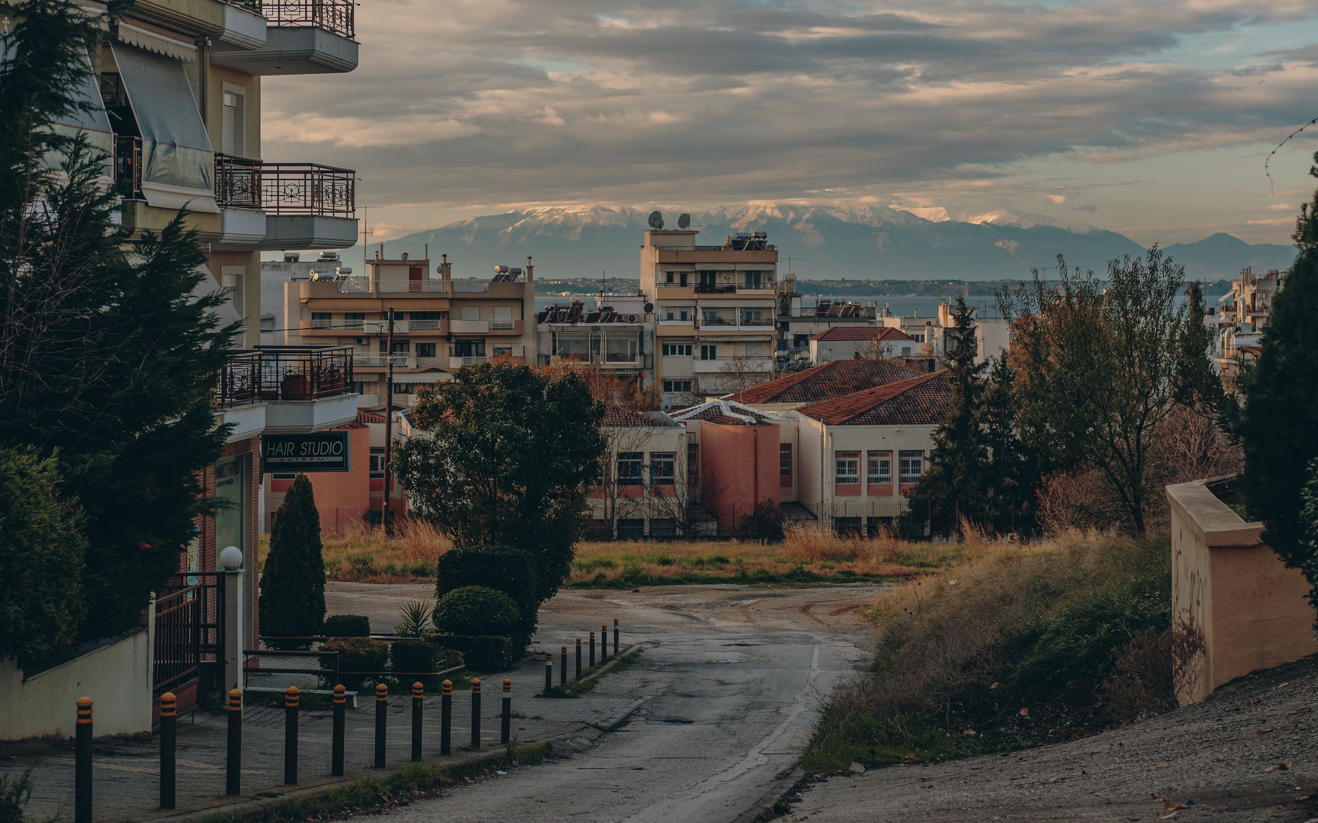 Download 2560x1600 buildings, houses, road, mountains, city wallpaper, background widescreen 16:10