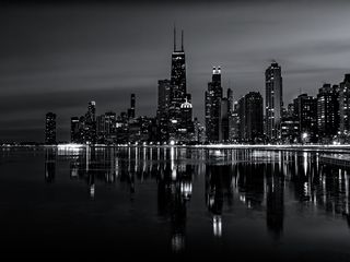 Download 320x240 buildings, lights, reflection, sea, black and white, city wallpaper, background nokia e72, e71, asha, alcatel onetouch