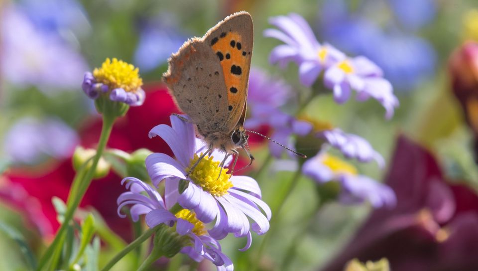 Download 960x544 butterfly, wings, flowers, petals, macro, bluer wallpaper, background playstation ps vita