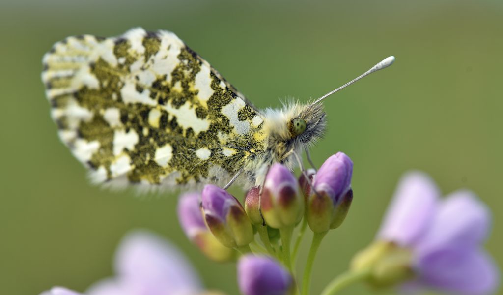 Download 1024x600 butterfly, wings, insect, flowers, buds, macro wallpaper, background netbook, tablet