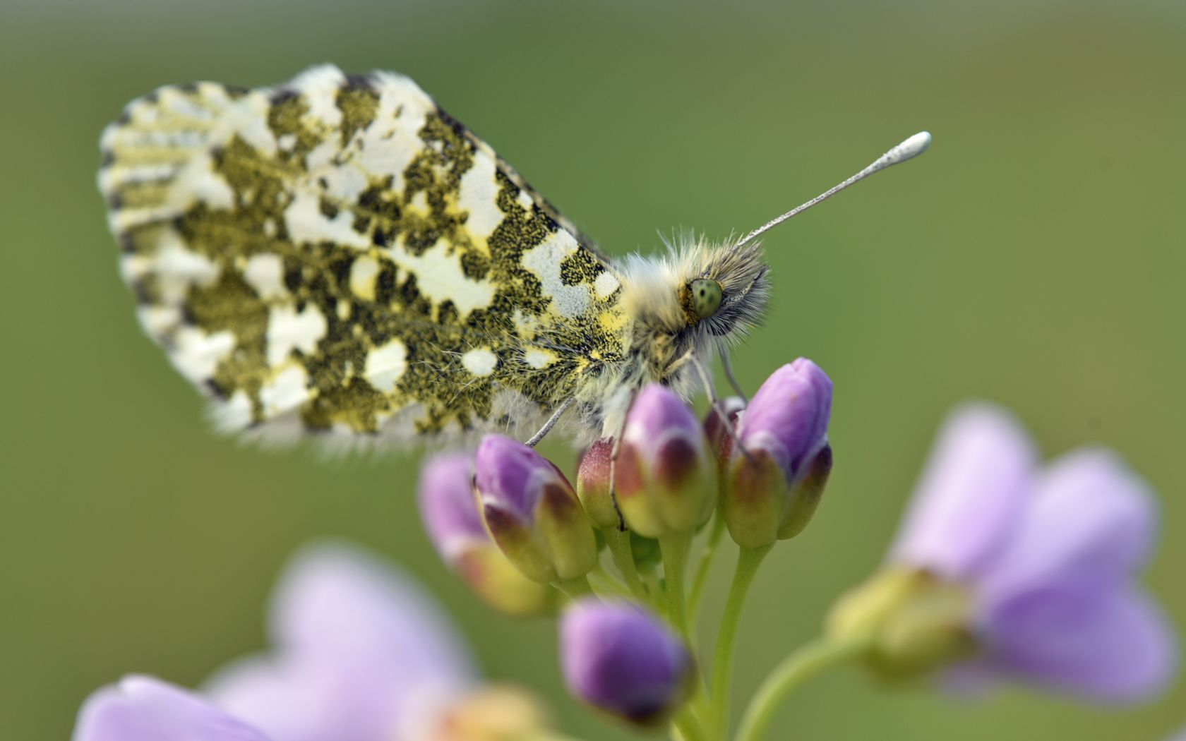 Download 1680x1050 butterfly, wings, insect, flowers, buds, macro wallpaper, background widescreen 16:10