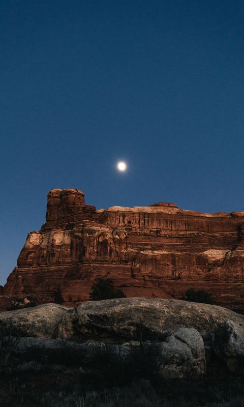 Download 480x800 canyon, rocks, night, moon, landscape wallpaper, background nokia x, x2, xl, 520, 620, 820, samsung galaxy star, ace, asus zenfone 4