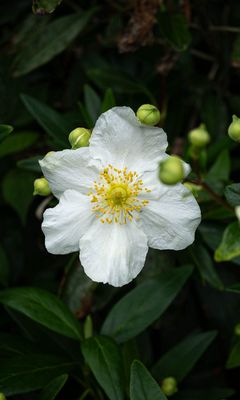 Download 240x400 carpenteria, flower, leaves, buds, plant, macro wallpaper, background nokia asha 311, samsung galaxy 580, omnia, lg kp500