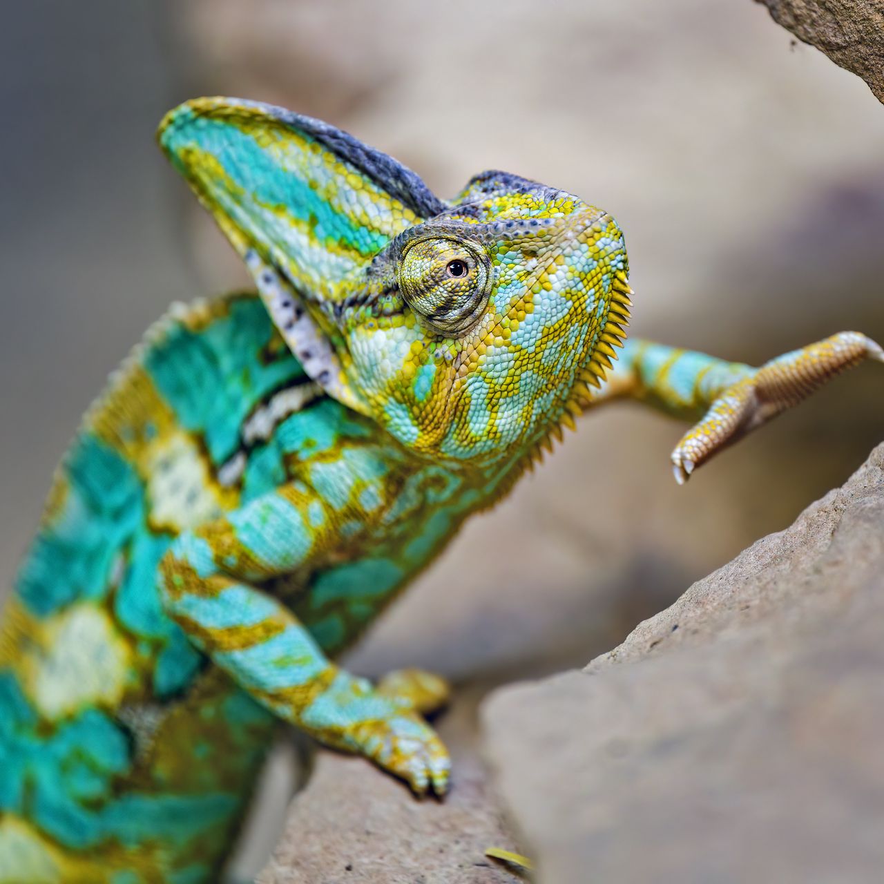 Download 1280x1280 chameleon, lizard, reptile, turquoise wallpaper, background ipad, ipad 2, ipad mini for parallax