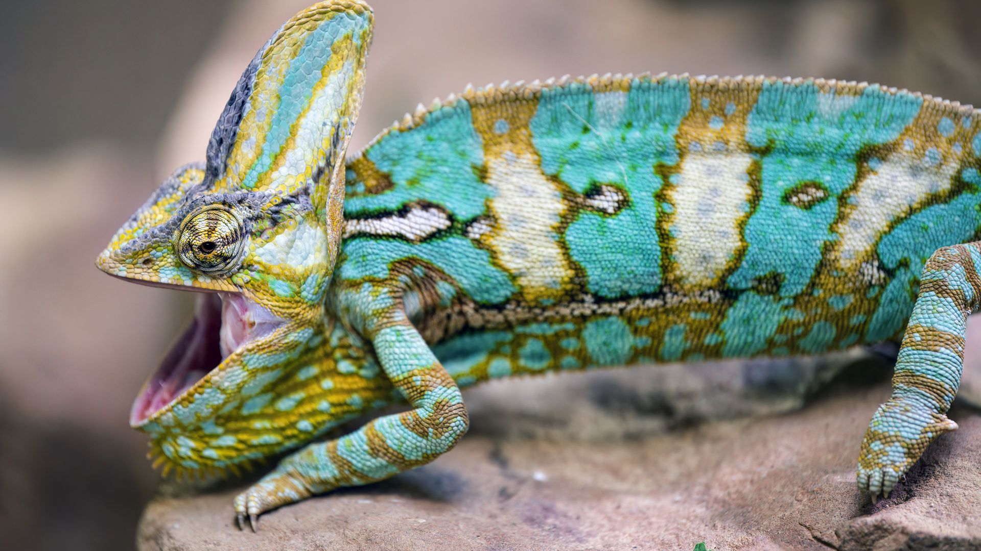 Download 1920x1080 chameleon, lizard, reptile, pattern, turquoise wallpaper, background full hd, hdtv, fhd, 1080p