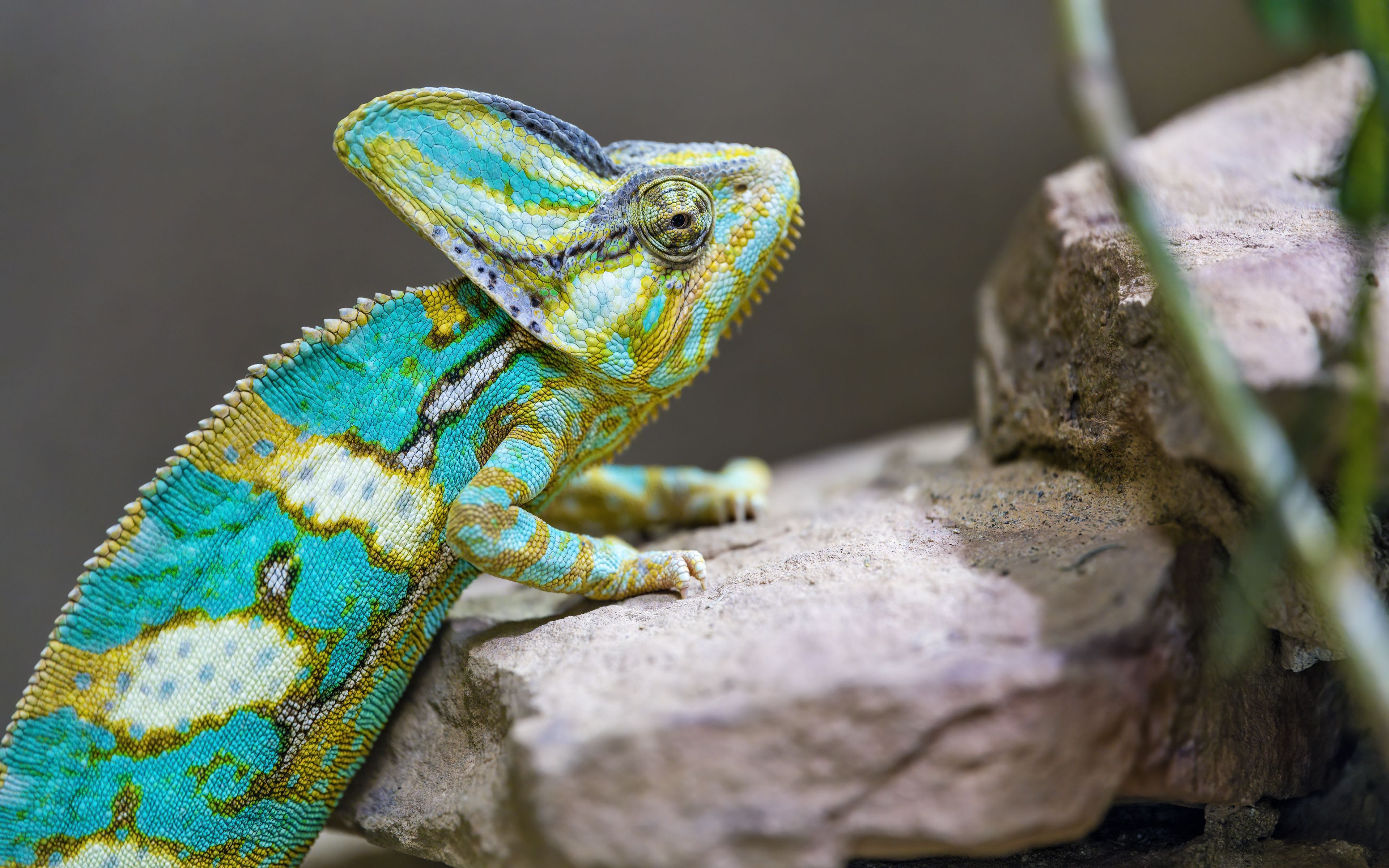 Download 3840x2400 chameleon, spots, reptile, stones, exotic wallpaper, background 4k ultra hd 16:10