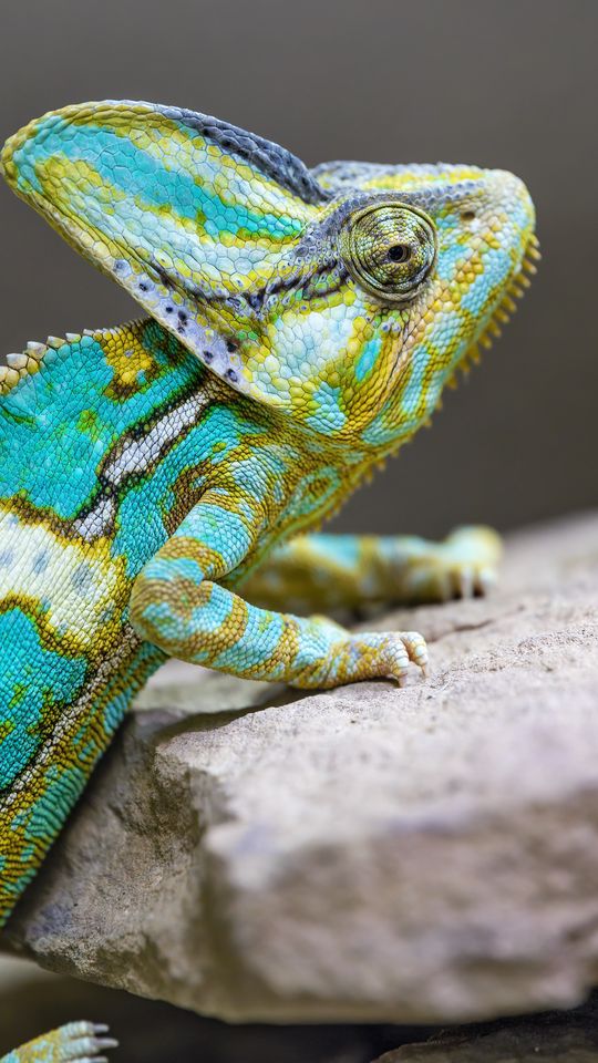 Download 540x960 chameleon, spots, reptile, stones, exotic wallpaper, background samsung galaxy s4 mini, microsoft lumia 535, philips xenium, lg l90, htc sensation