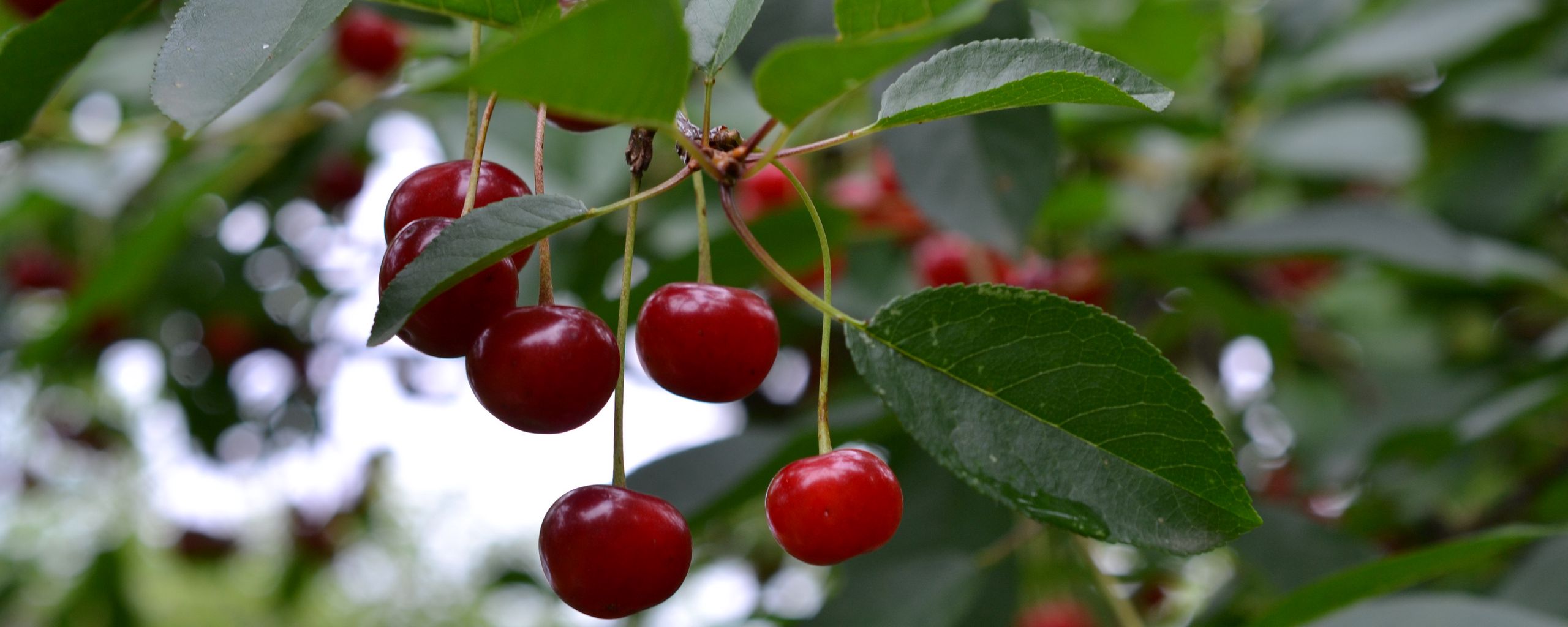 Download 2560x1024 cherry, berry, fruit, branch, leaves wallpaper, background ultrawide monitor