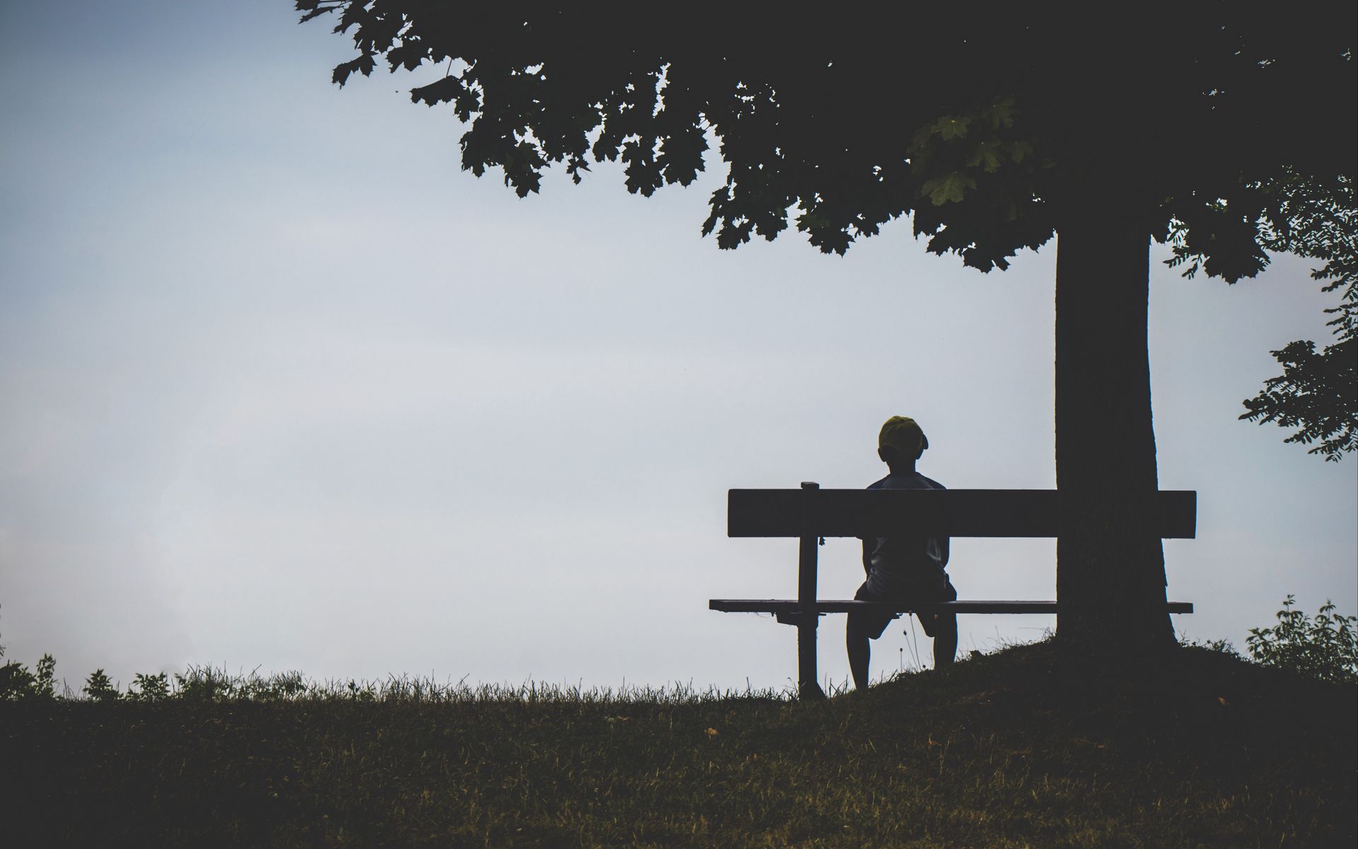 Download 1920x1200 child, bench, alone, solitude, silhouette, loneliness wallpaper, background widescreen 16:10
