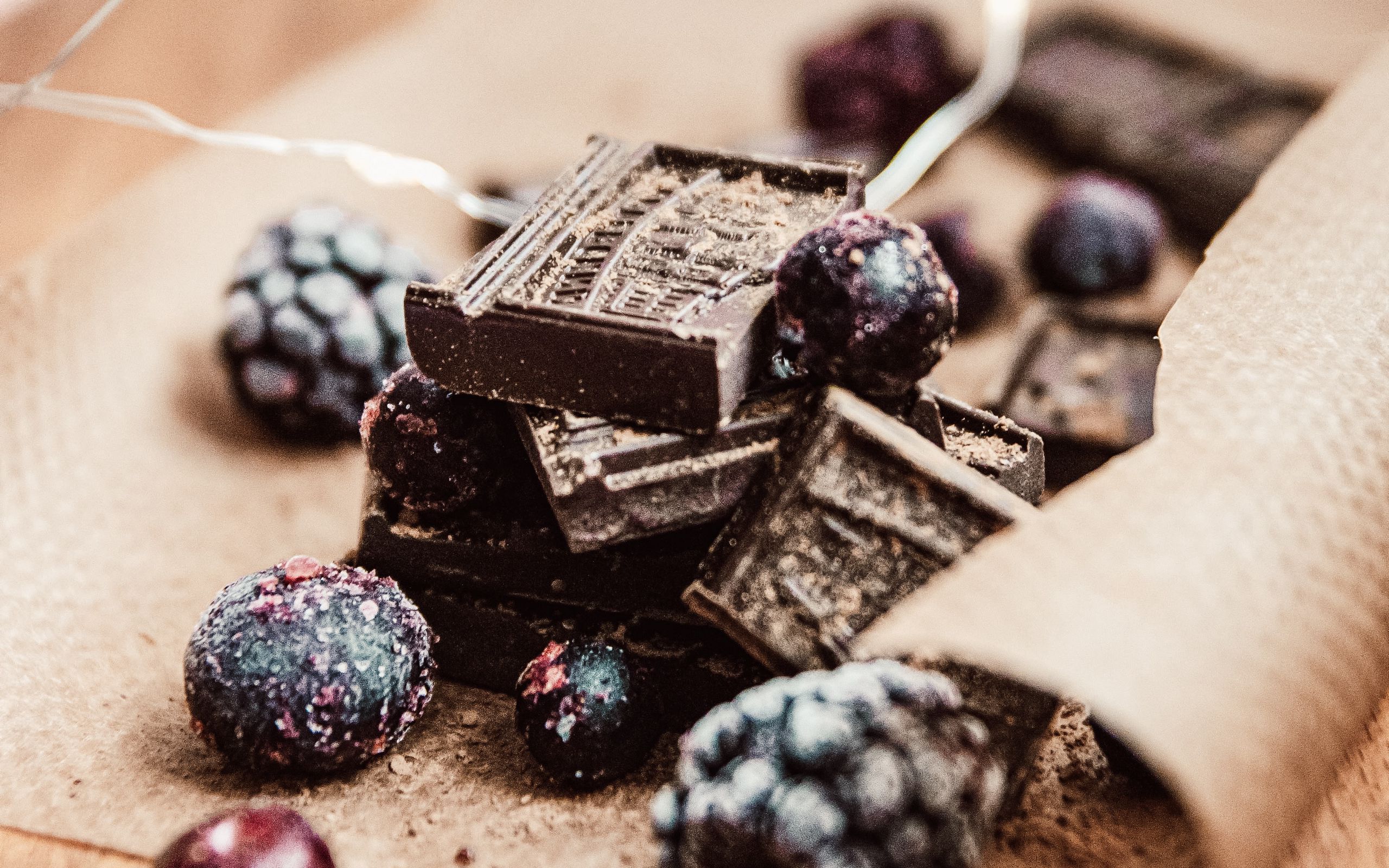 Download 2560x1600 chocolate, berries, dessert, garland wallpaper, background widescreen 16:10