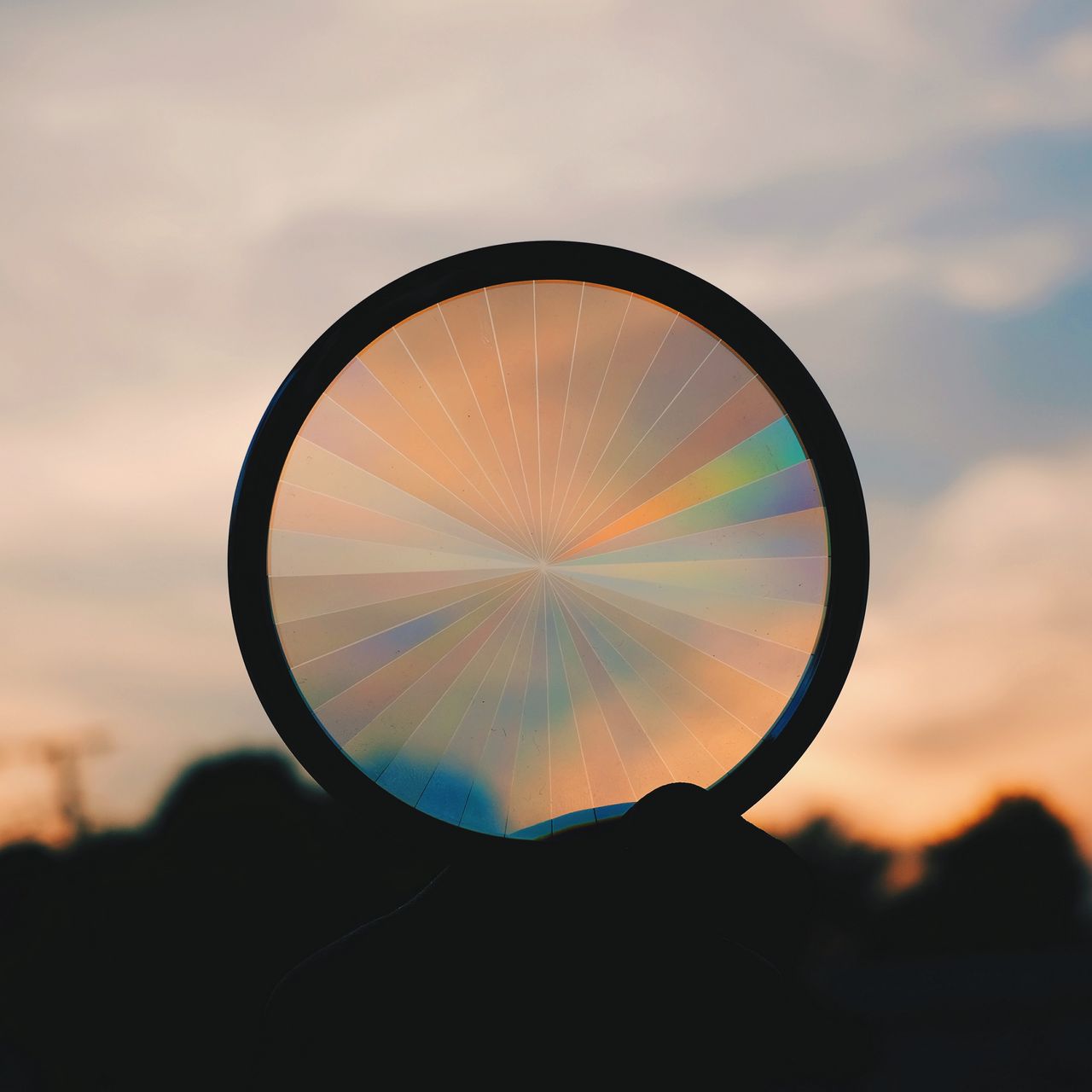 Download 1280x1280 circle, sunset, rainbow, shape, dark wallpaper, background ipad, ipad 2, ipad mini for parallax