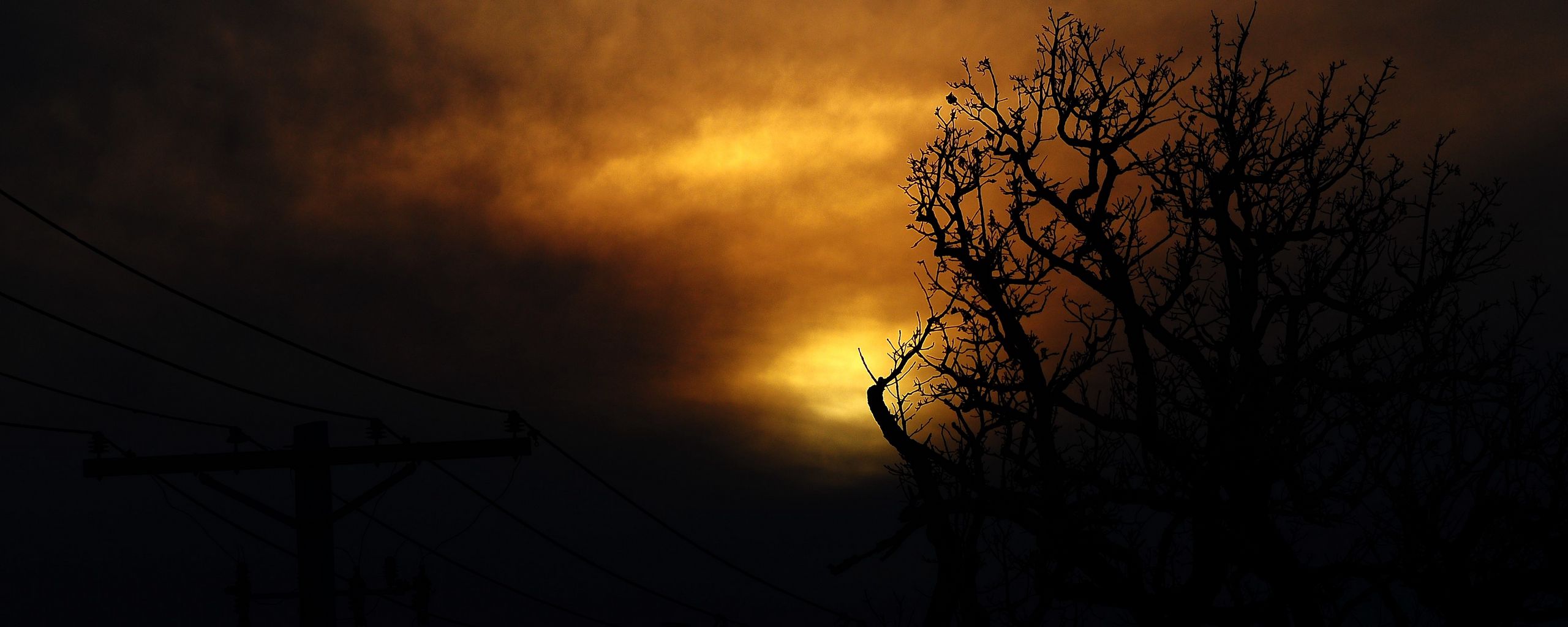 Download 2560x1024 clouds, tree, silhouettes, sunset, dark wallpaper, background ultrawide monitor