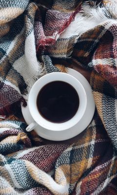 Download 240x400 coffee, cup, plaid, coziness wallpaper, background nokia asha 311, samsung galaxy 580, omnia, lg kp500