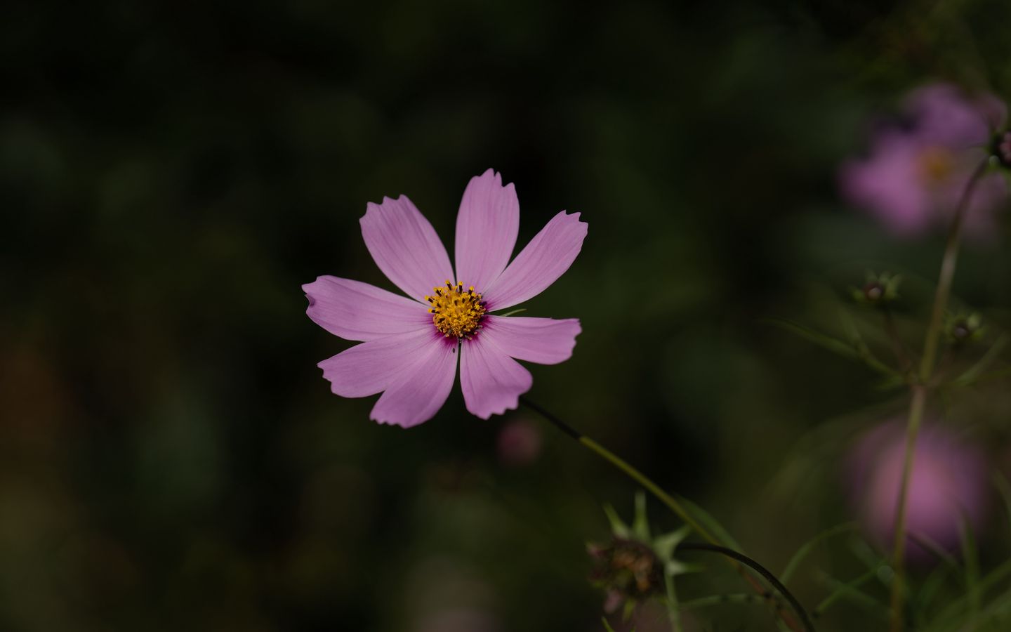 Download 1440x900 cosmos, flower, purple, macro, plant wallpaper, background widescreen 16:10