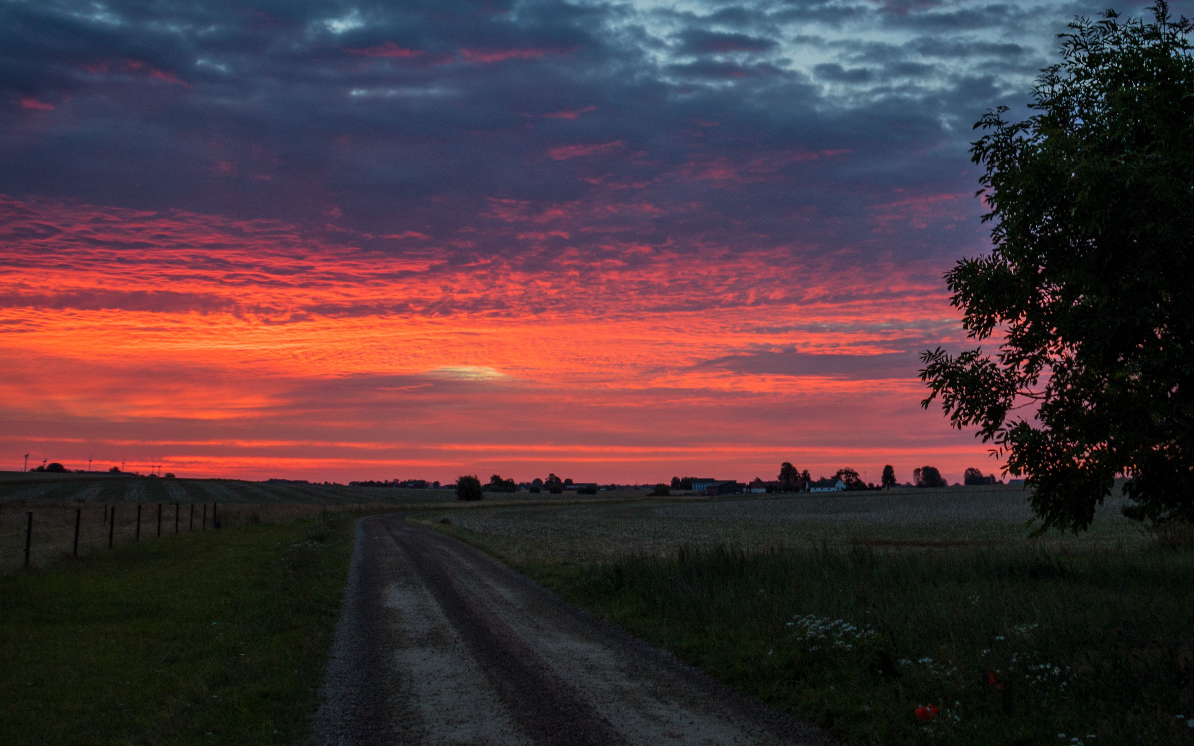 Download 3840x2400 dawn, sunrise, horizon, road, clouds, morning, grass, sky wallpaper, background 4k ultra hd 16:10