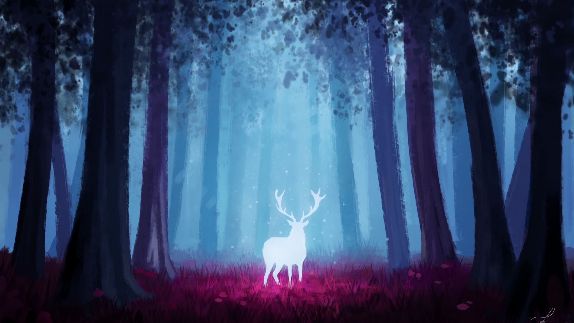 Download 1920x1080 deer, forest, art, light, glow wallpaper, background full hd, hdtv, fhd, 1080p