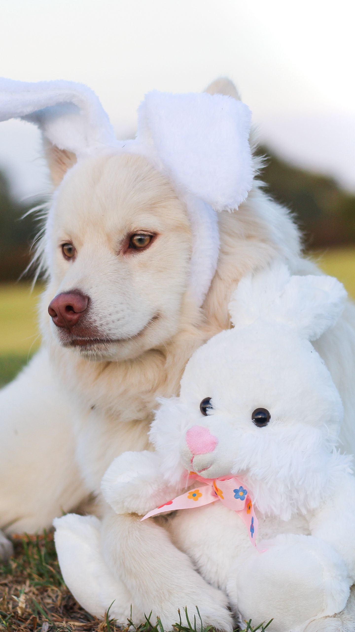 Download 1440x2560 dog, toy, rabbit wallpaper, background qhd samsung galaxy s6, s7, edge, note, lg g4