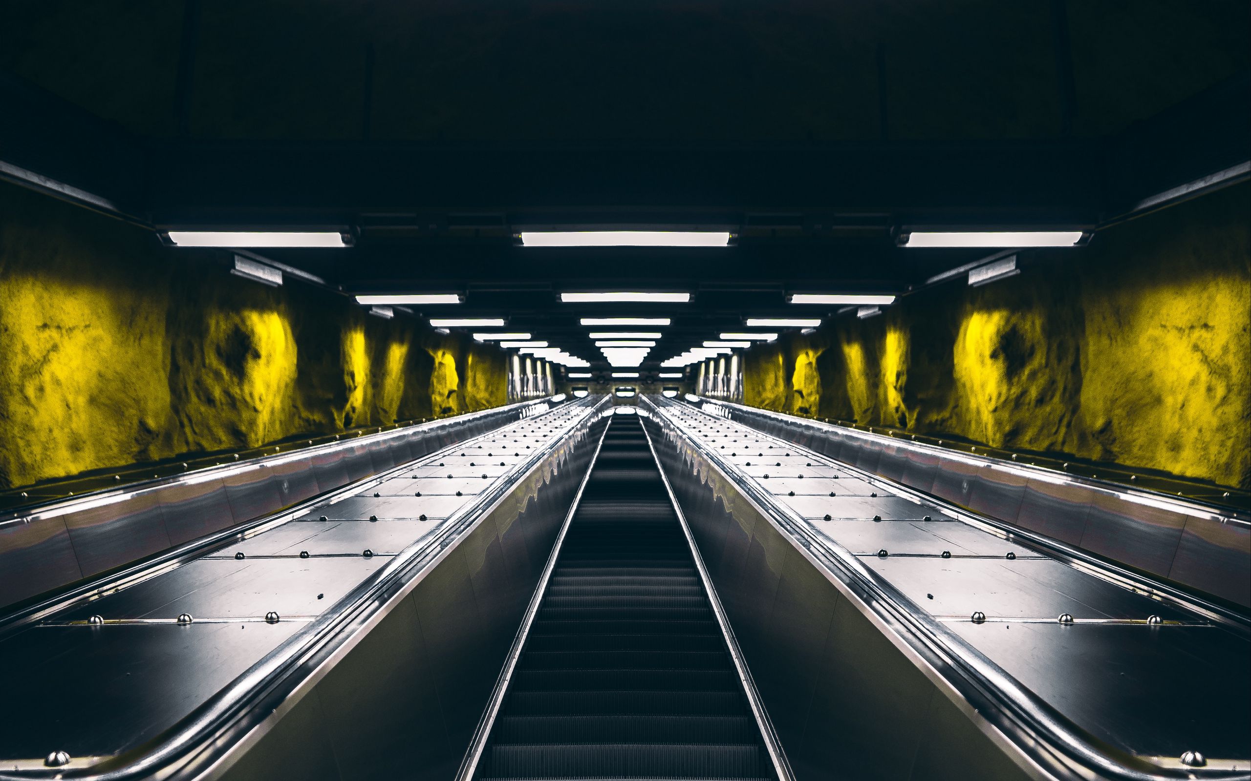 Download 2560x1600 escalator, metro, tunnel, backlight wallpaper, background widescreen 16:10