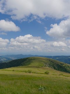 Download 240x320 field, grass, mountains, clouds, sky, landscape wallpaper, background old mobile, cell phone, smartphone
