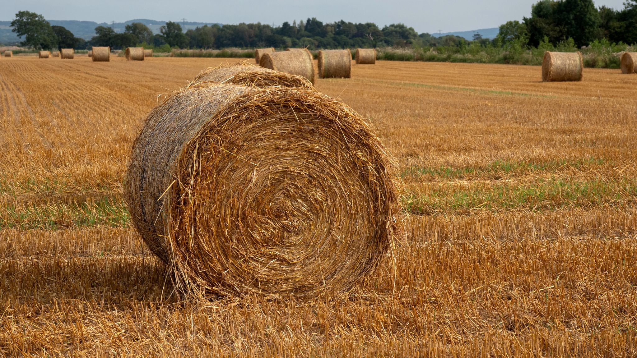 Download 2048x1152 field, hay, trees, sky, landscape wallpaper, background ultrawide monitor