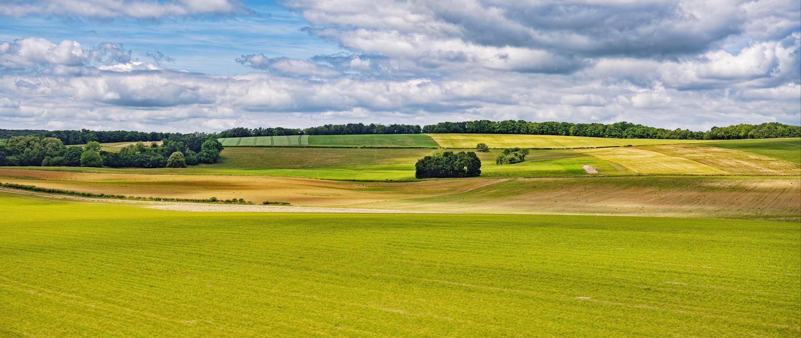 Download 2560x1080 fields, trees, landscape wallpaper, background dual wide 1080p