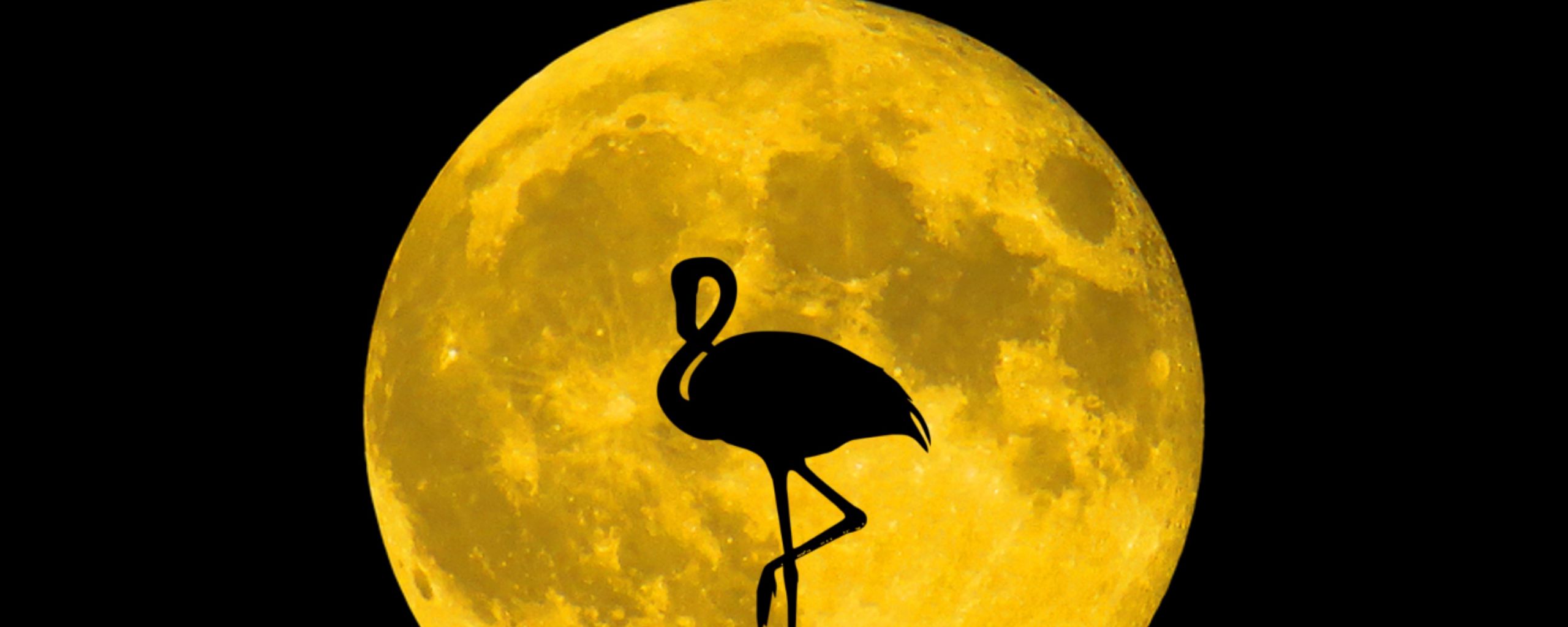 Download 2560x1024 flamingo, moon, silhouette, reflection, art wallpaper, background ultrawide monitor